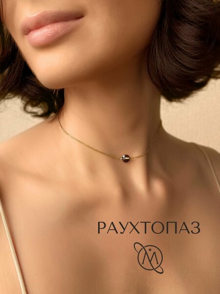 Колье чокер цепочка со вставкой из натурального раухтопаза в ювелирной огранке. Цепочка высокого качества из нержавеющей стали с гальваническим покрытием не темнеет и не вызывает аллергию. Колье не боится воды. Диаметр камня 6 мм делает украшение изящным и невесомым. Цепочка удлинитель 4 см позволяет регулировать длину. Подробные рекомендации по ношению и уходу, есть в карточке с описанием, которая приложена к изделию. Так же, в состав комплекта входят подарочная упаковка - бархатный мешочек, салфетка для чистки изделия. Можно собрать целую коллекцию камней. Ассортимент все время обновляется. Обратите внимание, что мы так же предлагаем браслеты на цепочках без позолоты и колье к ним в комплект. Увидеть их можно, нажав на иконку нашего магазина. Так вы сможете познакомиться со всем ассортиментом OM Gemstone Workshop. Мы уже 7 лет делаем украшения талисманы из натуральных камней с любовью и вниманием к деталям.