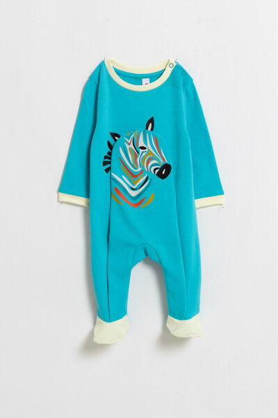 Детский комбинезон-слип с ползунками и длинным рукавом. Невероятно удобная модель выполнена из мягкого и приятного к коже материала, который легко переносит частые стирки и не требует сложного ухода. Слип закрывает тело малыша, позволяя при этом свободно двигаться. Спереди расположена полукруглая застёжка на кнопки, которая позволяет быстро и легко переодеть ребёнка или сменить памперс. По шаговому шву вшита комфортная ластовица, дающая большую свободу движений. Комфортный полукруглый вырез горловины с застёжкой на кнопки не мешает при переодевании ребёнка. Закрытая оформленная стопа обеспечивает удобную посадку и освобождает от необходимости носить носочки. Яркий цвет комбинезона с рисунком зебры подарит отличное настроение малышу и его родителям, а также позволит сделать атмосферные и уютные фото. Комбинезон представлен в двух цветах: горчичном и бирюзовом.