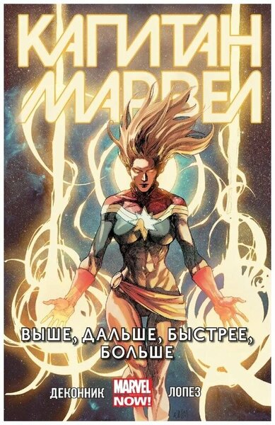 Выпуски 1–6 В комиксе Капитан Марвел: Выше, дальше, быстрее, больше с недавних пор Кэрол Дэнверс осела на Земле, но когда на нашу планету падает спасательная капсула с загадочной инопланетной девочкой, Капитан Марвел принимает судьбоносное решение – вернуться в космос! Ей предстоит схватка с силами Галактического Альянса и шпионами коварных спартанцев. К счастью, она будет не одна, ведь на помощь к ней придут не только новые друзья, но и старые знакомые из Стражей Галактики! Взявшаяся за комиксы о Капитане Марвел в 2012 году Келли Сью ДеКонник превратила эту важную, но как будто прозябающую на вторых ролях героиню в настоящую звезду вселенной Marvel.
