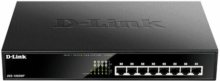 Коммутатор D-Link DGS-1008MP с 8 портами 10/100/1000Base-T с поддержкой PoE является идеальным решением для малого бизнеса, позволяющим пользователям легко подключать и подавать питание по Ethernet-кабелям на такие устройства, как PoE-совместимые беспроводные точки доступа, сетевые камеры или IP-телефоны. Данный коммутатор оснащен пассивной системой охлаждения, которая обеспечивает бесшумную работу устройства, что позволяет поместить его практически в любой комнате или офисе. Power over Ethernet 8 портов DGS-1008MP поддерживают стандарт IEEE 802.3at PoE. Каждый порт PoE подает питание мощностью до 30 Вт при общем бюджете коммутатора 125 Вт, что позволяет пользователям подключать к DGS-1008MP устройства, совместимые со стандартом 802.3at. Это позволяет размещать оборудование в труднодоступных местах вне зависимости от расположения электрических розеток и минимизировать прокладку кабеля. Высокая производительность Установка коммутатора выполняется быстро и легко, так как он не требует настройки. Поддержка автоматического определения полярности MDI/MDIX на всех портах исключает необходимость использования кроссовых кабелей при подключении к другому коммутатору или концентратору. Функция автосогласования на каждом порту позволяет определить скорость подключения к сетевому устройству (10, 100 или 1000 Мбит/с) и выполнить интеллектуальную настройку для обеспечения оптимальной совместимости и производительности. Сочетая в себе преимущества использования технологии PoE, высокую производительность и простоту эксплуатации, DGS-1008MP является экономически выгодным решением и отличным выбором для подключения PoE-совместимых устройств к сети предприятия малого бизнеса. Компактный размер и бесшумная работа Компактные размеры корпуса позволяют разместить DGS-1008MP практически в любом месте. Коммутатор также может быть установлен в 19-дюймовую стойку, которая, как правило, размещается в серверной комнате вместе с другим оборудованием. Коммутатор оснащен пассивной системой охлаждения, благодаря которой он работает бесшумно, при этом сохраняя эффективность работы. Экономия электроэнергии Коммутатор DGS-1008MP соответствует стандарту IEEE 802.3az Energy Efficient Ethernet (EEE) и в случае совместного использования с устройствами EEE потребляет меньше электроэнергии при небольшом объеме трафика за счет автоматического перехода неактивных портов в спящий режим.