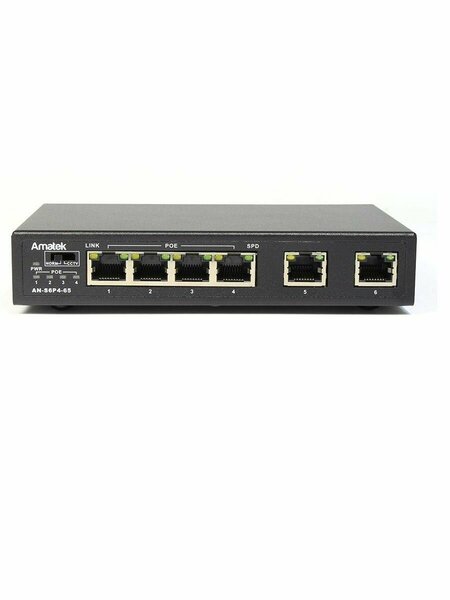 Коммутатор Amatek AN-S6P4-65 на 6 портов представляет собой надежное и функциональное решение для организации проводной сети. Устройство обеспечивает высокую скорость передачи данных благодаря поддержке 10/100 Мбит/с на каждом из 4 портов с поддержкой PoE+ и 2 портам с автосогласованием и авто-MDI/MDIX. Особенностью данного коммутатора является поддержка технологии Power over Ethernet (PoE), которая позволяет передавать питание и данные по одному кабелю. Это позволяет экономить на кабелях и упрощает процесс установки. Общая потребляемая мощность составляет 65 Вт для всех PoE-портов. Коммутатор поддерживает PoE-устройства на базе стандартов IEEE 802.3 at/af, что позволяет использовать его с различными сетевыми устройствами. Коммутационная способность устройства составляет 1,6 Гбит/с, что обеспечивает высокую скорость передачи данных. Коммутатор поддерживает jumbo-кадры до 10240 байт, что позволяет передавать данные, по размеру превышающие 1500 байт в кадре. Устройство оснащено светодиодными индикаторами для контроля питания устройства, информирования о наличии сетевого соединения, его активности и скорости. Металлический корпус размером 202x104x44.5 мм обеспечивает прочность и долговечность. Коммутатор Amatek AN-S6P4-65 поддерживает технологию Plug and Play, что упрощает процесс установки и настройки. Питание устройства осуществляется от сети AC 110-240В. Для работы на расстоянии до 250 м необходимо использовать LAN кабель CAT5e и выше, UTP4 24AWG (медные провода сечением не менее 0,5 мм). Коммутатор Amatek AN-S6P4-65 - это надежное и функциональное решение для организации проводной сети, которое обеспечивает высокую скорость передачи данных, простоту установки и удобство использования.