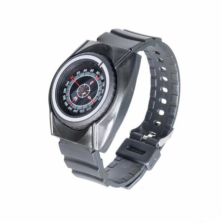 Туристический жидкостный компас с ремешком на запястье, выполнен в виде наручных часов. Изготовлен из пластика и резины. Внутри капсулы компаса размещена магнитная стрелка совмещенная с циферблатом. На циферблате имеется шкала градусов с ценой деления 4˚ и индексы N, E, S, W, (N-север, S-юг, E-восток, W-запад). На отдельном вращающемся основании расположена визирная метка для определения азимута. Цена деления шкалы азимута 4˚ Длительность успокоения магнитной стрелки около 5 с Диапазон рабочих температур от -20˚С до +30˚С Материал корпуса пластик, резина Габаритные размеры (без ремешка) 49х43х17 мм Вес 30 г