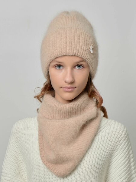 Комплект мягкая зимняя Шапка с отворотом + снуд для девочки. Минималистичный комплект из популярной бини шапки и снуда в два оборота, который будет актуален с любым образоми и стилем. Прекрасный комплект шапка и снуд на демисезонную погоду, для повседневной носки с любым типом верхней одежды. Шапка и снуд вязаные, отлично тянутся и идеально садятся на любую форму головы. Шапка и снуд обеспечит вам стиль, комфорт и тепло на любую погоду как девочке ребенку, подростку, так и взрослому. В состав входит ангора, поэтому шапку можно носить от 0 до -15. Декор: шеврон «Andersen».
