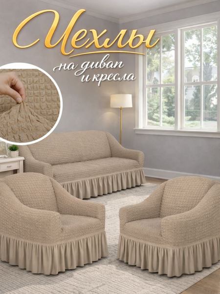 Комплект чехлов на диван и кресла, универсальные, эластичные