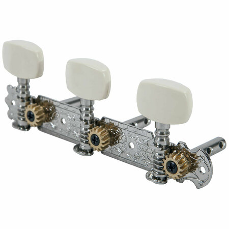 LOD-017A Комплект универсальной хромированной механики 40мм для гитары без пластиковой втулки с двумя отверстиями, с пластиковой ручкой. Расстояние между колками 40мм, шестеренка крепится винтом! Без упаковки! Alice