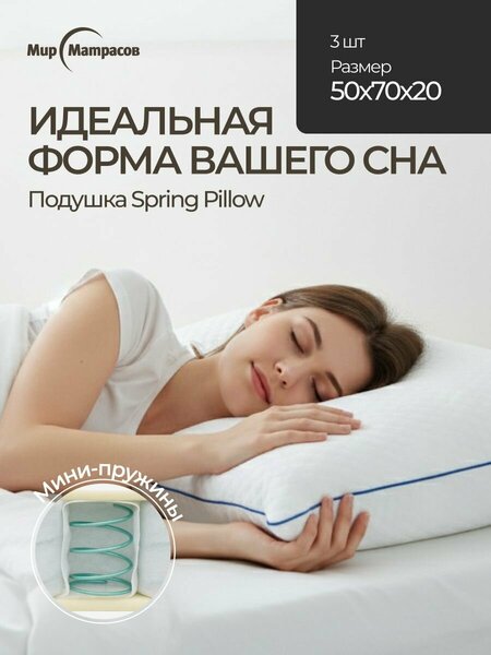 Подушка с пружинным блоком в основе, из очень мягких независимых пружин: каждая пружина находится в отдельном мешочке, точно и гибко реагирует на малейшее движение. Особенности Мягкая равномерная поддержка во время сна Гибко реагирует на изменение позы во время сна Обладает максимально расслабляющим эффектом Сохраняет поддерживающий эффект засчет пружинного блока в течение долгоговремени Для любого положения тела во время сна Состав Внешний чехол: Ткань трикотаж PILLOW вискоза Внутренний чехол: Блок независимых мини-пружин + Полиэфирное волокно (100% полиэфир) Наполнитель: Ткань микрофибра (100 % полиэстер)