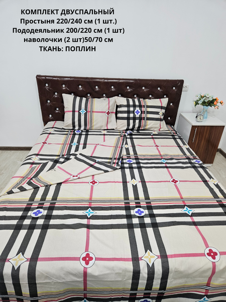 Погрузитесь в комфорт и уют с этим высококачественным комплектом постельного белья из поплина. Состав комплекта: Пододеяльник: 1 шт 220/200 cм Простыня: 1 шт. 240/220 cм Наволочки: 2 шт. 50/70 см Материал — 100% натуральный хлопок, который отличается мягкостью, прочностью и воздухопроницаемостью. Поплин — это плотная, но одновременно лёгкая ткань, которая прекрасно сохраняет форму и цвет даже после многочисленных стирок. Характеристики: Материал: поплин (100% хлопок)