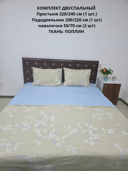 Погрузитесь в комфорт и уют с этим высококачественным комплектом постельного белья из поплина. Состав комплекта: Пододеяльник: 1 шт 220/200 cм Простыня: 1 шт. 240/220 cм Наволочки: 2 шт. 50/70 см Материал — 100% натуральный хлопок, который отличается мягкостью, прочностью и воздухопроницаемостью. Поплин — это плотная, но одновременно лёгкая ткань, которая прекрасно сохраняет форму и цвет даже после многочисленных стирок. Характеристики: Материал: поплин (100% хлопок)