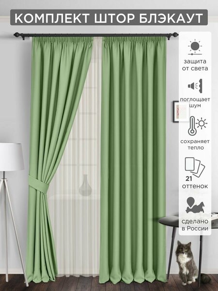 Комплект штор из однотонной портьеры Блэкаут. Классическая модель штор, которая давно стала бестселлером продаж. Блэкаут износостойкая прочная ткань (плотность 240 г/м2) не выцветает, мягко драпируется в красивые складки, замечательно сохраняет форму, не собирает пыль, приглушает шум и поглощает свет (в зависимости от оттенка от 60 до 100%). Стильные шторы прекрасно подойдут для гостиной, спальни, детской, кухни, зала, кабинета, офиса. Крепление на шторную ленту шириной 6 см с двумя рядами нитей позволяет регулировать ширину под ваш карниз и легким стягиванием создавать равномерные, изящные складки. Чтобы портьера выглядела роскошно, рекомендуется, чтобы ширина шторы была в 1,5-2 раза больше карниза. Ткань не требует особых средств для стирки, рекомендован деликатный режим 30 градусов без отжима.