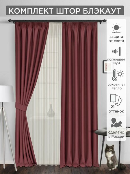 Комплект штор из однотонной портьеры Блэкаут. Классическая модель штор, которая давно стала бестселлером продаж. Блэкаут износостойкая прочная ткань (плотность 240 г/м2) не выцветает, мягко драпируется в красивые складки, замечательно сохраняет форму, не собирает пыль, приглушает шум и поглощает свет (в зависимости от оттенка от 60 до 100%). Стильные шторы прекрасно подойдут для гостиной, спальни, детской, кухни, зала, кабинета, офиса. Крепление на шторную ленту шириной 6 см с двумя рядами нитей позволяет регулировать ширину под ваш карниз и легким стягиванием создавать равномерные, изящные складки. Чтобы портьера выглядела роскошно, рекомендуется, чтобы ширина шторы была в 1,5-2 раза больше карниза. Ткань не требует особых средств для стирки, рекомендован деликатный режим 30 градусов без отжима.