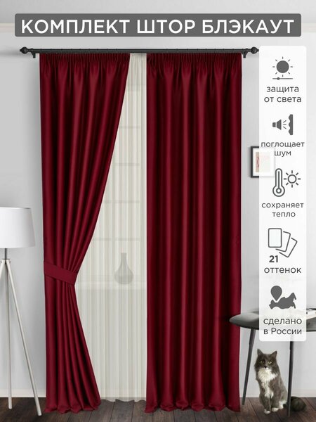 Комплект штор из однотонной портьеры Блэкаут. Классическая модель штор, которая давно стала бестселлером продаж. Блэкаут износостойкая прочная ткань (плотность 240 г/м2) не выцветает, мягко драпируется в красивые складки, замечательно сохраняет форму, не собирает пыль, приглушает шум и поглощает свет (в зависимости от оттенка от 60 до 100%). Стильные шторы прекрасно подойдут для гостиной, спальни, детской, кухни, зала, кабинета, офиса. Крепление на шторную ленту шириной 6 см с двумя рядами нитей позволяет регулировать ширину под ваш карниз и легким стягиванием создавать равномерные, изящные складки. Чтобы портьера выглядела роскошно, рекомендуется, чтобы ширина шторы была в 1,5-2 раза больше карниза. Ткань не требует особых средств для стирки, рекомендован деликатный режим 30 градусов без отжима.