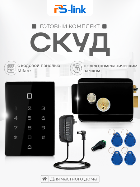 Комплект СКУД на одну дверь Ps-Link KIT-T12MF-B электромеханический замок, кодовая панель со встроенным контроллером с поддержкой карт Mifare