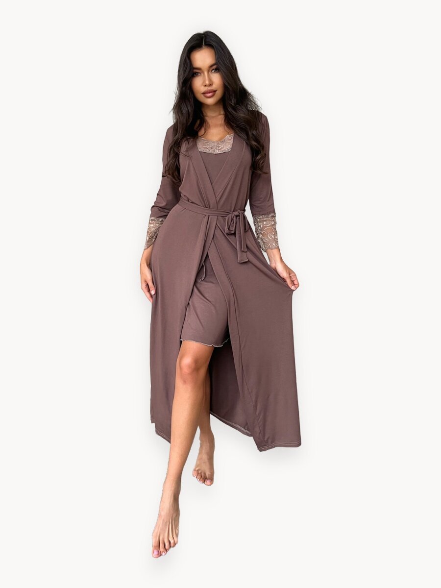 Нежный комплект женской домашней одежды - это идеальное сочетание комфорта и сексуальности. В набор входят сорочка и халат с кружевом, изготовленные из мягкой искозы, приятна на ощупь и не вызывает раздражения коже. Халат с ночнушкой для женщин всех размеров включая большие, высоких и беременных. Комфортный крой позволяет носить эту одежду как для сна, так и для отдыха дома, а также для кормления малыша. Сорочка имеет удобные бретели, которые обеспечивают максимальный комфорт. Халатик с длинным рукавом и кружевом, который идеально подходит для летнего сезона. Популярная двойка - отличный выбор для подарка на 14 февраля, на 8 марта для молодежи, мам и всех женщин, которые хотят чувствовать себя привлекательной и комфортно дома. Размеры от 42 до plus size. Ночная сорочка и халат выполнены из мягкой трикотажной ткани, которая приятно облегает фигуру и не стесняет движений. Комплект идеально подойдет для роддома и кормящих мам. Легкий, стильный и удобный, он станет незаменимым элементом вашего домашнего гардероба. Любое время года в этом наборе будет наполнено уютом и комфортом. Женственное кружево и новый дизайн подчеркивают элегантность и изящество. Запах на пеньюаре добавляет элегантности и удобства при ношении. Благодаря высокому качеству материала, этот комплект обеспечивает максимальное удобство и стиль. Идеально подходит для лета, обеспечивая легкость и прохладу. Эта модель сочетает в себе женственность и практичность, благодаря чему она отлично сидит на любой фигуре. Материал позволяет коже дышать, что особенно важно в жаркое время года. Сорочка с халатом доступен в разных цветах, чтобы каждая девушка могла выбрать что-то по своему вкусу.