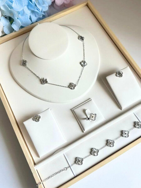 Комплект: кольцо, серьги, браслет, ожерелье Стиль: Van Cleef Назначение: на каждый день