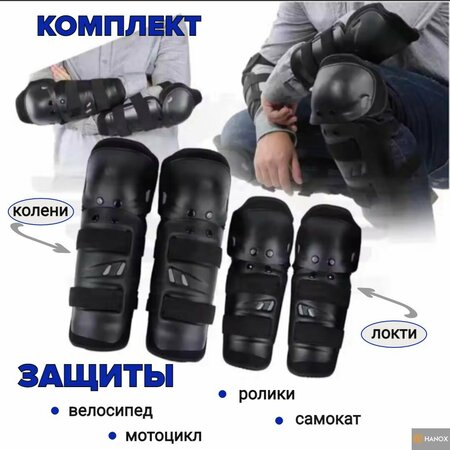 Комплект защиты наколенники и налокотники универсальный , подходит для катания на мопеде , для начинающих на мотоцикле. Отлично подойдет для защиты колен и локтей во время прогулки на велосипеде , при занятиях экстремальным спортом, защитит ваши ноги и руки при катании на скейте , самокате , роликовых коньках , моноколесе . Эргономичный дизайн. Идеально прилегает к вашим коленям и локтям . Твердая обопочка, защищает суставы со всех сторон, позволяет избежать травм. Изготовлен из 60% пэ (полиэтилена) и 40% полиэстера. Комплект защиты состоит из наколенников 2 шт. и налокотников 2 шт. Отличный подарок для любителей активного спорта.