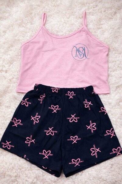 "Женская пижама с сердечками: комплект из топа и шортов для сна и отдыха." Этот комплект пижамы создан специально для женщин, объединяя стиль, комфорт и романтичный дизайн. Изготовленная из легкой и мягкой ткани, пижама идеально подходит для ежедневного использования и теплых ночей. Принт с сердечками не только поднимает настроение, но и добавляет особую изюминку вашему домашнему образу. Основные характеристики и преимущества: Качественный материал: Мягкая, дышащая ткань, приятная для тела и не вызывающая раздражения. Романтичный дизайн: Принт с сердечками делает пижаму нежной и женственной. Удобный крой: Лёгкий топ на бретелях и шорты с эластичным поясом обеспечивают свободу движений. Выбор размеров: Доступна в размерах S, M, L, XL, чтобы каждая могла найти идеальный вариант. Многофункциональность: Подходит для сна, отдыха и повседневного использования дома. Лёгкость ухода: Ткань легко стирается, не теряя своей формы и яркости даже после многократных стирок. Для любого сезона: Лёгкий материал идеально подходит для летних ночей, но также комфортен в помещении зимой.