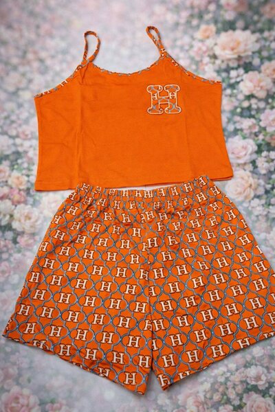 "Женская пижама с сердечками: комплект из топа и шортов для сна и отдыха." Этот комплект пижамы создан специально для женщин, объединяя стиль, комфорт и романтичный дизайн. Изготовленная из легкой и мягкой ткани, пижама идеально подходит для ежедневного использования и теплых ночей. Принт с сердечками не только поднимает настроение, но и добавляет особую изюминку вашему домашнему образу. Основные характеристики и преимущества: Качественный материал: Мягкая, дышащая ткань, приятная для тела и не вызывающая раздражения. Романтичный дизайн: Принт с сердечками делает пижаму нежной и женственной. Удобный крой: Лёгкий топ на бретелях и шорты с эластичным поясом обеспечивают свободу движений. Выбор размеров: Доступна в размерах S, M, L, XL, чтобы каждая могла найти идеальный вариант. Многофункциональность: Подходит для сна, отдыха и повседневного использования дома. Лёгкость ухода: Ткань легко стирается, не теряя своей формы и яркости даже после многократных стирок. Для любого сезона: Лёгкий материал идеально подходит для летних ночей, но также комфортен в помещении зимой.