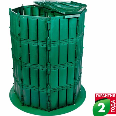 Компостер Geolia предназначен для эксплуатации на дачном участке, огороде. Может эксплуатироваться в диапазоне температур от -30°C до 45°C. Характеризуется простотой сборки. При необходимости объем легко наращивается при помощи дополнительных секций. Вертикально расположенные прорези обеспечивают приток воздуха и исключают образование гнили в отходах животноводства и растениеводства. полезный объем составляет 800 л; модель поставляется без крышки и дна.