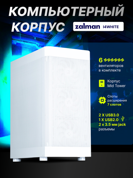 Компьютерный корпус Zalman I4, Mid Tower, Без БП, 6 кулеров в комлекте, сетчатые панели, I4WHITE
