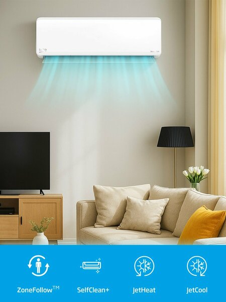 Описание Повысьте уровень комфорта в вашем доме или офисе с инновационным настенным кондиционером Beko BRHPA 180/BRHPA 181 Inverter, который сочетает высокую эффективность, интеллектуальные функции и заботу о чистоте воздуха. Этот кондиционер идеально подходит для помещений до 54 м², обеспечивая комфортное охлаждение летом и эффективный обогрев в прохладное время года. Главное преимущество этой модели — инверторный компрессор GREE, который работает тихо, экономично и поддерживает стабильную температуру без резких скачков. Фильтры с активированным углем и холодным катализатором эффективно очищают воздух от пыли, бактерий и неприятных запахов, создавая здоровый микроклимат в помещении. А благодаря технологии самоочистки SelfClean+, внутренний блок защищён от накопления грязи и влаги, что продлевает срок службы устройства. Не менее важна и функция ZoneFollow, которая определяет температуру вокруг пульта и автоматически регулирует подачу воздуха именно туда, где вы находитесь. Это делает климат-контроль точным и персонализированным. В ночное время включается тихий режим, чтобы вы могли спокойно отдыхать, а таймер на 24 часа поможет автоматизировать включение и выключение кондиционера. Основные характеристики: Тип: Настенный кондиционер с наружным блоком Компрессор: GREE Тип двигателя: Инверторный Обслуживаемая площадь: до 54 м² Класс энергоэффективности: A Климатический класс: T1 Хладагент: R32 При охлаждении: Мощность: 5275 Вт Потребляемая мощность: 1643 Вт Холодопроизводительность: 18000 БТЕ/ч При обогреве: Мощность: 5275 Вт Потребляемая мощность: 1461 Вт Уровень шума (внутренний блок): 36 дБ Уровень шума (наружный блок): 52 дБ Особенности конструкции: Самоочистка внутреннего блока: технология SelfClean+ Двойная система фильтрации: фильтр с активированным углем и фильтр с холодным катализатором Технология ZoneFollow: автоматическая регулировка по температуре вокруг пульта Функционал: Режимы: охлаждение, обогрев, осушение, ночной режим Таймер: до 24 часов Автоматическая очистка внутреннего блока Интеллектуальное распределение воздушного потока Энергосбережение и надежность: Инверторный двигатель снижает потребление электроэнергии Класс A: оптимальное соотношение мощности и экономии Хладагент R32 — экологичный и высокоэффективный Габариты и вес: Внутренний блок (В×Ш×Г): 91 × 23 × 29,5 см Наружный блок (В×Ш×Г): 80 × 55,3 × 28,2 см