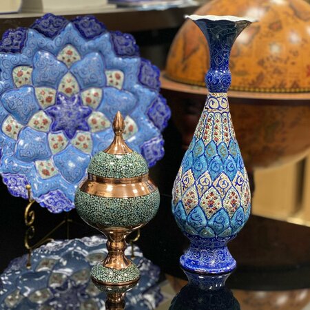 Конфетница "Фирузе Куби" - это уникальное изделие, выполненное в технике ручной инкрустации бирюзой на медную основу. Это делает каждый предмет неповторимым и эксклюзивным. Изделие изготовлено из меди (99%), что гарантирует его долговечность и прочность. Размеры конфетницы составляют 24 см в высоту и 11 см в ширину, что делает ее компактной и удобной для хранения. Особенностью конфетницы является ее цвет. Она выполнена в двух оттенках: бирюзовом и медном, что придает ей особый шарм и позволяет гармонично вписаться в любой интерьер. Конфетница "Фирузе Куби" станет отличным подарком на любой праздник, будь то День Рождения, Новый год или 23 Февраля. Она будет радовать своего владельца не только своим внешним видом, но и своей историей, ведь каждый предмет изготавливается вручную. Страна производства конфетницы – Иран, что гарантирует высокое качество и долговечность изделия. Вес товара составляет 420 грамм, а объем – 175 мл. Выбирая конфетницу "Фирузе Куби", вы получаете не только красивый и стильный предмет декора, но и изделие, которое будет радовать вас своим внешним видом и качеством на протяжении многих лет.