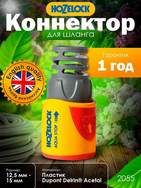 Коннектор Hozelock Aquastop(12.5-15 мм): автостоп, тройная фиксация, экономия воды до 10 бар