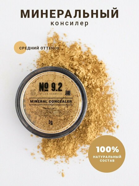 MI LAB - российский производитель минеральной декоративной косметики. Выбирайте оттенок консилера в тон или на один тон светлее минеральной пудры основы MI LAB. 4 оттенка с желтинкой: Light №9.0 (очень светлый) - для очень светлой кожи; Light medium №9.1 (средне светлый) - для среднего светлого тона кожи; medium №9.2 (средний) - для чуть темнее среднего тона кожи; dark medium №9.3 (темный) - для смуглой или загорелой кожи. Минеральный консилер MI LAB - плотная рассыпчатая пудра пыльца для лица и кожи вокруг глаз, предназначенная для маскировки несовершенств кожи: синяки под глазами, воспаления, покраснения, прыщи, сосудистые звездочки, постакне, пигментные пятна, темные круги под глазами и др. Сухой тональный корректор подходит для всех типов кожи: проблемной, чувствительной, аллергичной, сухой, жирной, комбинированной и нормальной кожи. Эко пудра mineral pollen имеет полностью натуральный состав, не забивает поры и позволяет коже дышать. В производстве мы используем только чистые ингредиенты, которые имеют сертификаты безопасности. Шелковистая текстура корректора равномерно распределяется по коже, легко растушевывается и не скатывается. Минеральный рассыпчатый консилер имеет очень экономичный расход. Гипоаллергенный и безопасный состав консилера не содержит: отдушки, масла, спирты и консерванты. Минеральный корректор подходит для ежедневного макияжа, можно использовать как профессиональную косметику. Рекомендуем наносить до или после нанесения тональной основы на места, требующие особого внимания. Наносить легкими похлопывающими движениями небольшой пушистой кистью под глаза (кисть MI LAB №4) или маленькой кистью для точечного нанесения (кисть MI LAB №7).