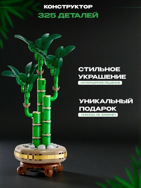 Этот набор для сборки позволяет создать детализированную модель бамбука удачи, которая станет символом спокойствия, утонченности и принесет удачу в ваш дом или офис. Он входит в ботаническую коллекцию строительных наборов, вдохновленную настоящими растениями и цветами.