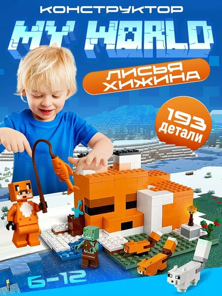 Детская игрушка конструктор развивающий для мальчиков и девочек Майнкрафт Лисья хижина 193 детали — высококачественный аналог Лего. Погрузись в волшебный мир приключений вместе с minecraft. Набор включает в себя культовые фигурки жителей: зомби-утопленника, лису, лисенка, песца, и фигурку героя в лисьем облике. Вместе с этими героями создавайте свои уникальные сценарии и новые сюжеты. Составляющие хорошо крепятся друг к другу, это позволяет вашему малышу сосредоточиться на игровом процессе и комфортно провести время. Позволяя фантазии выйти за рамки, ребенок развивает творческий потенциал, воображение, а также во время сборки развивается логика и мышление. Такая модель отлично подходит в качестве подарка на день рождения школьнику, племяннику, внуку, дочке, другу, подруге. Малыш без труда воспроизведёт воображаемую картинку в реальность. Кроме этого, игра состоит из прочных блоков, что позволит построить крепкую конструкцию. Благодаря этому будет еще интереснее создавать свой маленький игровой мир! Эта серия состоит из множества мелких элементов, направленных на разработку мелкой моторики, внимательности и сообразительности. Он сможет занять на долгие часы вашего ребенка увлекательной игрой, а также расширит его кругозор. Что может быть лучше для Родителей-здоровые, умные дети!