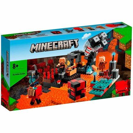 Персонажи из игры — набор включает в себя сразу несколько персонажей Майнкрафт: странника Подземелья, куб магмы, пиглина, жестокого пиглина и страйдера, а также множество функций и аксессуаров