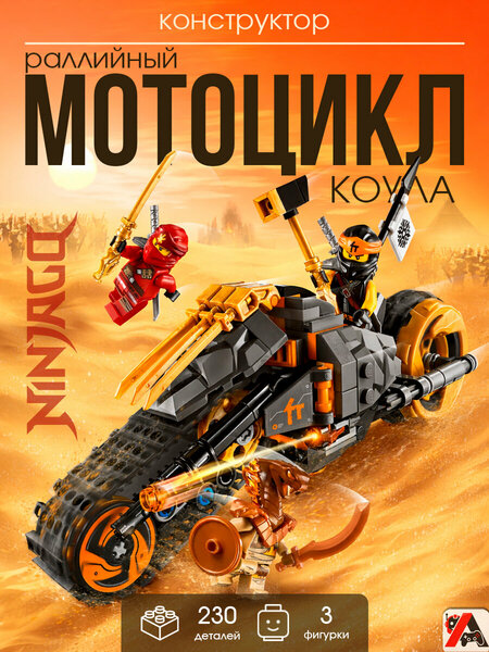 Конструктор Ниндзяго Раллийный мотоцикл Коула — это динамичный набор для юных поклонников мира лего ниндзяго и захватывающих историй о храбрых воинах. Сюжет переносит детей в Пустыню злой судьбы, где отважный коул отправляется навстречу опасным приключениям на мощном раллийном байке. Этот конструктор ниндзя создан для тех, кто любит скорость, сражения и атмосферу легендарной вселенной lego ninjago. Мотоцикл оснащён гусеничными траками и большими задними колёсами с золотыми ободьями, что придаёт модели брутальный и эффектный вид. Детально проработанная конструкция позволяет разыгрывать сцены преследования и сражений в песках. На байке установлены пулемёты, а в арсенале героев — катаны и легендарный Золотой молот, который необходимо вернуть в ходе миссии. В набор входят минифигурки Коула, Кая и Огненного разрушителя, благодаря чему можно воссоздать напряжённое противостояние добра и зла или придумать собственные сценарии. Игровые элементы способствуют развитию воображения, мелкой моторики и логического мышления. Сборка из 230 деталей увлекает ребёнка, позволяя почувствовать себя частью команды ниндзя. Этот набор станет отличным вариантом как подарок для мальчика, который увлекается тематикой боевых искусств и техникой, так и универсальный подарок для поклонников динамичных приключений. Он гармонично дополняет коллекцию в стиле lego ninjago и совместим с другими наборами данной серии, расширяя игровые возможности. Конструктор выполнен из качественных материалов, детали надёжно соединяются между собой и обеспечивают прочность собранной модели. Яркий дизайн, узнаваемые персонажи и насыщенный игровой процесс делают его интересным для детей школьного возраста и коллекционеров. Конструктор Ниндзяго Раллийный мотоцикл Коула 11327 (70672) Количество деталей: 230 шт. Количество минифигурок: 3 шт.