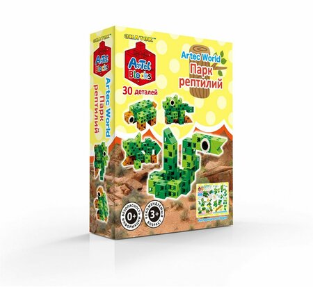 Конструктор Artec Blocks «Парк рептилий» — развивающий набор для детей от 3 лет. Конструктор «Парк рептилий» от Artec Blocks познакомит ребёнка с удивительным миром пресмыкающихся. С помощью 30 ярких деталей малыш сможет собрать реалистичные модели питона, ящерицы, ужика и черепахи. Элементы-глазки придают фигуркам живой и забавный вид, а красочная инструкция помогает легко освоить процесс сборки. Особенности конструктора: