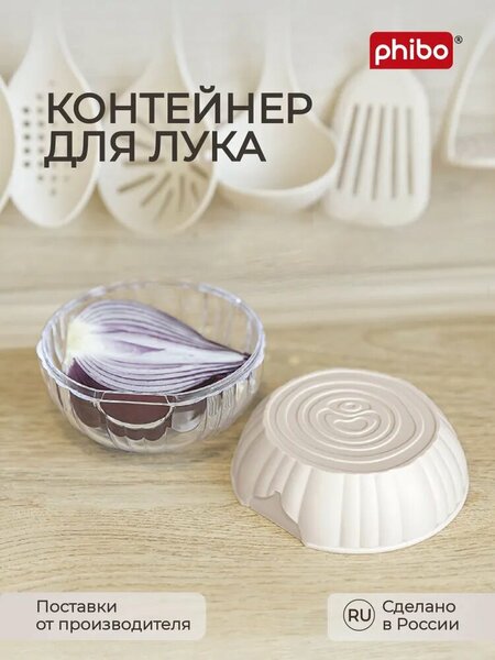 Куда убрать оставшуюся половинку луковицы? Наше решение — практичный и стильный контейнер, который имеет компактные размеры, изготавливается из безопасного пластика с длительным сроком службы и имеет современный привлекательный дизайн. Удобная форма позволяет ставить один контейнер на другой, а яркий цвет и крышка с объёмным рисунком, повторяющим фактуру разрезанного лука, поможет всегда отыскать его среди других продуктов. Плотная крышка дольше сохраняет свежесть лука и предотвращает его засыхание.