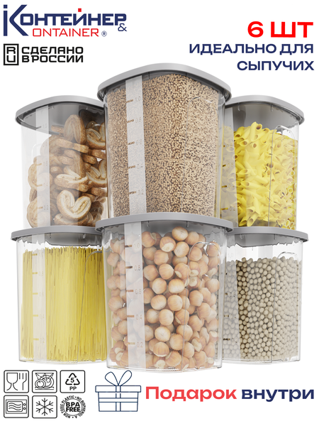 Представляем вашему вниманию набор контейнеров для сыпучих продуктов, который станет незаменимым помощником на вашей кухне. Этот удобный комплект идеально подходит для хранения различных круп, специй и других сыпучих ингредиентов. Каждый контейнер надежно защищает содержимое от влаги и загрязнений, обеспечивая долгосрочное хранение ваших любимых продуктов. Удобство использования - одна из главных особенностей этого набора. Контейнеры оснащены выемками по бокам ёмкости, которые позволяют удобно брать и держать ёмкость. Благодаря прозрачным стенкам и мерной шкале (мерные деления заканчиваются на значении 1000 мл, но полный объем ёмкости - 1200 мл) вы сможете легко визуально контролировать уровень содержимого, что сделает ваш процесс приготовления блюд более простым и комфортным. Дизайн контейнеров продуман до мелочей - они легко впишутся в интерьер любой кухни, а их компактный размер позволяет экономить место в шкафах и на столах. Контейнеры также компактно складываются друг в друга. Набор идеально подходит для использования в повседневной жизни, а также для организации хранения продуктов на праздниках или специальных событиях. Набор контейнеров для сыпучих продуктов можно использовать не только для хранения круп и специй, но и для других сыпучих ингредиентов, включая сахар, соль и муку. Удобное открывание и закрывание контейнеров делает их применение интуитивно понятным, что особенно ценно в быстром ритме современной жизни. Выбирая этот набор, вы инвестируете в качественное и продвинутое решение для хранения на кухне, которое поможет поддерживать порядок и организованность. Он станет отличным выбором как для дома, так и для дачи, обеспечивая надежное хранение ваших кулинарных запасов. Убедитесь, что ваши сыпучие продукты всегда под рукой и хранятся в идеальных условиях с помощью этого практичного набора контейнеров. Простота, надежность и функциональность - вот что делает наши контейнеры незаменимыми в вашем повседневном плане. Набор из 6 контейнеров объемом 1200 мл (полный объем ёмкости, мерные деления заканчиваются на значении 1000 мл).