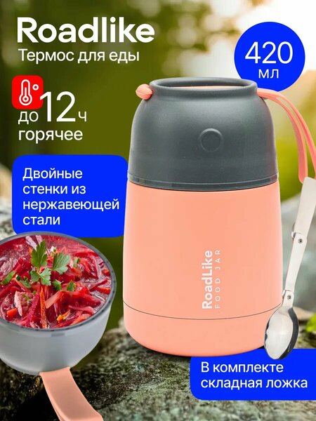 Термос для еды RoadLike - отличное решение для тех, кто хочет всегда иметь свою любимую еду с собой. Имеет объемом 420 мл и изготовлен из высококачественной нержавеющей стали, обладающей антикоррозийными свойствами. Он прочен и устойчив к деформации, не изменяет вкусовые качества пищи и легко моется. Термос 0,5 мл - это идеальное решение для тех, кто хочет взять с собой больше еды. Наш Термос для еды имеет двойные стенки и вакуумную изоляцию, что позволяет сохранять тепло до 6 часов и холод до 12 часов. Благодаря этому вы всегда сможете наслаждаться свежей и горячей едой, независимо от того, где вы находитесь. Термос детский - это отличный выбор для детей. Он прочный, легкий и легко помещается в рюкзак. Благодаря плотной крышке с силиконовым кольцом, предотвращающей протекание и расплескивание содержимого, вы можете быть уверены, что ваш ребенок не испачкает себя и окружающих содержимым из термопосуды. Это отличное решение для тех, кто любит супы и горячие блюда. Термос для супа имеет широкое горло, что позволяет комфортно наливать и есть еду. Благодаря двойным стенкам и вакуумной изоляции, он сохраняет тепло до 6 часов, что позволяет наслаждаться горячим супом в любое время и в любом месте. Это идеальное решение для тех, кто хочет комфортно наслаждаться своей любимой едой в путешествиях или в брать ее с собой на обед в офис. Благодаря широкому горлу, вы можете легко наливать и есть еду, а благодаря двойным стенкам и вакуумной изоляции, он сохраняет тепло до 6 часов. В комплекте предусмотрена ложка, что делает его еще более удобным и практичным. Roadlike - возьми комфорт в дорогу!
