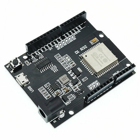 WeMos ESP32 D1/R32 — это универсальная плата разработки, выполненная в форм-факторе Arduino UNO, но основанная на мощном микроконтроллере ESP32. Поддерживает Wi-Fi и Bluetooth, имеет высокую производительность, множество интерфейсов и подходит для проектов IoT, робототехники, автоматизации и умного дома. Полностью совместима с Arduino IDE и библиотеками ESP32. Напряжение питания: 5 В (USB) или 7–12 В (VIN) Логические уровни GPIO: 3.3 В Количество GPIO: 34 (часть занята системными функциями) АЦП: 12-бит, до 18 каналов ШИМ: до 16 каналов Форм-фактор Arduino UNO, удобен для макетирования Микроконтроллер ESP32-WROOM Wi-Fi 802.11 b/g/n Bluetooth 4.2 / BLE Два ядра Xtensa 240 МГц 4 МБ Flash 32-битная архитектура USB-UART CH340 / CP2102 (зависит от версии) Поддержка Arduino IDE, MicroPython, ESP-IDF Множество интерфейсов: I2C, SPI, UART, ADC, DAC, PWM, I2S