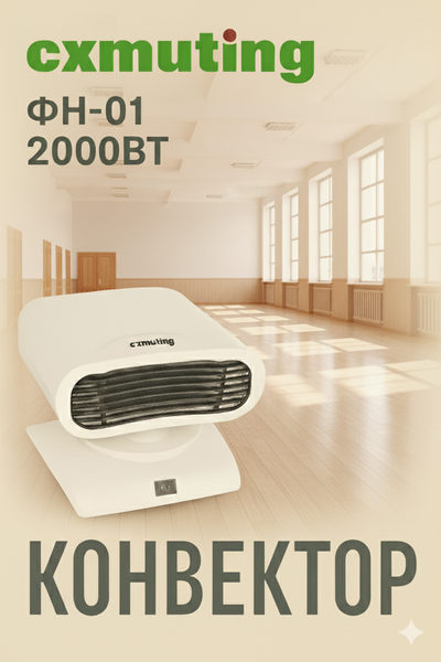 Электрический конвектор Cxmuting ФН-01 — это современное устройство для быстрого и равномерного обогрева помещений. Благодаря мощности 2000 Вт и продуманной конструкции, он обеспечивает комфортную температуру в доме или офисе даже в холодное время года. Компактный, стильный и безопасный — идеальное решение для вашего уюта. Преимущества: Мощность 2000 Вт — быстро прогревает помещение площадью до 20–25 м². Равномерное распределение тепла — поддерживает комфортную температуру без пересушивания воздуха. Тихая работа — подходит для спальни, офиса или детской комнаты. Защита от перегрева — автоматическое отключение при достижении критической температуры. Экономичное энергопотребление — высокая эффективность при низких затратах электроэнергии. Современный дизайн — компактный и эстетичный, отлично вписывается в интерьер. Надёжность — корпус выполнен из термостойких материалов.