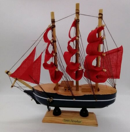 Этот миниатюрный корабль "Алые паруса" представляет собой стилизованную под знаменитый бриг "Россия" модель морского парусника. Он выполнен из дерева и окрашен в белый и черный цвета, а паруса имеют насыщенный красный оттенок. Размеры корабля составляют 3 × 10 × 10 см, что делает его удобным для размещения на полке или столе. Корабль "Алые паруса" станет прекрасным подарком для отважного человека, романтика или любителя морских приключений. Он может послужить достойным экземпляром в уже существующую коллекцию или началом нового увлечения. Этот сувенир будет отличным выбором для тех, кто хочет привнести в свою жизнь немного морской романтики и приключений.