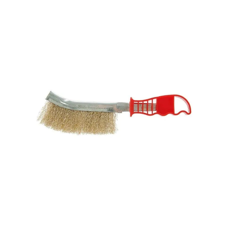 Кордщетка ручнаяю. Выпуклая, изогнутая ручная корщетка для снятия старой краски и ржавчины. Предназначена для снятия старой краски и ржавчины с поверхностей предметов. Материал: Волнистая проволока; Пластиковая ручка. Характеристики Материал рукоятки пластик Материал щетины латунированная сталь Вид щетины рифленая Общая длина 230 мм Длина рабочей части 130 мм Ширина рабочей части 50 мм. Кордщетка АТС - это рифленая латунированная ручная щетка с изогнутой ручкой, предназначенная для эффективного снятия краски и ржавчины с различных поверхностей. Общая длина щетки составляет 23 см, а длина рабочей части - 13 см, что позволяет легко добраться до труднодоступных мест. Волнистая проволока из латунированной стали, используемая в качестве щетины, обеспечивает высокую прочность и долговечность щетки. Рифленая структура щетины позволяет эффективно удалять краску и ржавчину, не повреждая при этом поверхность обрабатываемого материала. Пластиковая ручка щетки обеспечивает удобство и комфорт при использовании, а также предотвращает скольжение инструмента из рук во время работы. Выбирая кордщетку АТС, вы получаете надежный и эффективный инструмент для удаления старой краски и ржавчины с различных поверхностей.