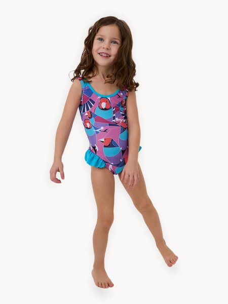 Чтобы малышке было комфортно плавать в купальнике, учтены все важные моменты: В составе ткани 17% эластана, поэтому купальник тянется и не сковывает движения. А еще 83% переработанного полиэстера — ребенку будет комфортно после купания, потому что ткань быстро сохнет В нижней части купальника расположена эластичная подкладка, благодаря которой кожа малыша будет дышать Все швы в купальнике плоские, поэтому они не натрут кожу