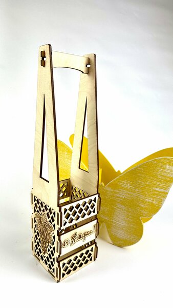 Подарочная коробка (бутылочница). Вы можете самостоятельно собрать подарочный набор, проявить творческий подход и раскрасить коробку удобным для вас материалом (краски, гуашь, фломастеры, пропитка). Коробка выполнена из экологически чистого материала без применения красящих веществ. Конструкция разборная, сборка интуитивно понятная. Размеры в собранном виде: 37х9х9 см (ВхШхГ)