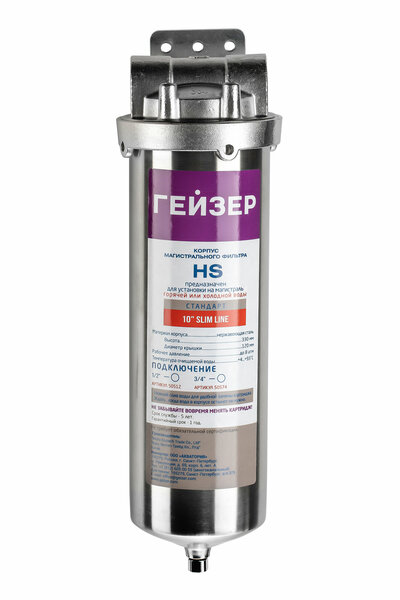 Корпус магистрального фильтра Гейзер HS 10SL 3/4", для горячей и холодной воды, защита сантехники, бытовых приборов, 50574