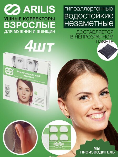 Корректор для ушей - это идеальная форма ушей за 1 минуту! Ушные корректоры арилис изготовлены из высококачественного материала. Корректор ушей не вызывает аллергии и раздражения кожи, так как произведён из качественного гипоаллергенного силикона с использованием запатентованной технологии многослойного нанесения клея. Арилис корректоры которые подходят мужчинам, женщинам и детям. Ушные корректоры арилис для взрослых разработаны специально под особенности строения уха взрослого человека. Ушные корректоры для взрослых можно использовать бессменно на протяжении 3-7 дней. Корректоры для ушей обеспечивают анатомически правильную форму. Эстетические ушные корректоры полностью незаметны. Арилис это абсолютный комфорт при ношении. Ушной корректор можно использовать каждый день. Корректоры ушные не боятся воды. Вы сможете принимать душ, спать и жить полной жизнью, не чувствуя абсолютно никакого дискомфорта используя для ушей корректор. На сегодняшний день корректор для ушей арилис это самое качественное решение! Вся продукция Arilis имеет медицинские допуски и необходимые сертификаты. Корректор ушной помогает избавиться от лопоухости. Арилис корректоры для ушей высокого качества. ет избавиться от лопоухости. Арилис корректоры для ушей высокого качества. В нашем ассортименте есть и другие товары: Пластырь от пупочной грыжи детский Rupfix Ушные корректоры Арилис Эспандер для челюсти Fint4Face, тренажер для скул Вестибулярная пластина BULA STOPPI Очищающий спрей Арилис для пластырей и корректоров Пластырь силиконовый SILIPLAST