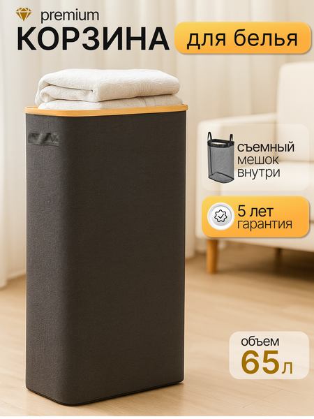 Корзина для белья с объемом 65 литров — это идеальное решение для хранения грязного или чистого белья в вашем доме. Её стильный и практичный дизайн позволяет использовать корзину в различных помещениях, будь то ванная комната, шкаф, гардеробная. Изготовленная из качественных материалов, таких как бамбук и ткань она станет не только функциональным, но и эстетически привлекательным элементом интерьера. Эта Напольная корзина имеет вместительный бак с внутренним мешком для переноски, что позволяет легко справляться с большими объемами одежды, полотенец. Складная конструкция обеспечивает удобство хранения ящика, когда бельевая корзина не используется, а ручки делают её переноску легкой и комфортной. Такие модели подходят для использования в ванной или прачечной, где требуется надежное хранение вещей. Кроме того, помогает избежать неприятных запахов из ящика с бельем и защитить содержимое от пыли и загрязнений. Варианты с сеткой обеспечивают хорошую дышащую вентиляцию, что предотвращает образование плесени, сохраняя ваши вещи. Прямоугольная универсальная раскладная форма предоставляет возможность оптимально использовать пространство и поможет сэкономить место. Выбирая контейнер для белья, стоит обратить внимание на универсальные решения, которые подойдут для хранения любой одежды.