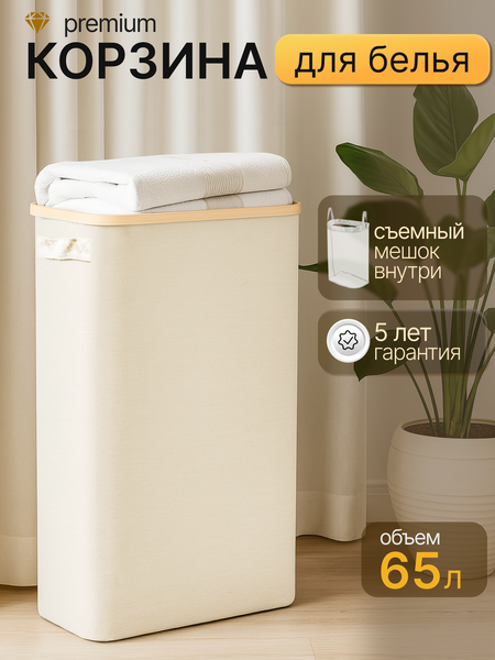 Корзина для белья с объемом 65 литров — это идеальное решение для хранения грязного или чистого белья в вашем доме. Её стильный и практичный дизайн позволяет использовать корзину в различных помещениях, будь то ванная комната, шкаф, гардеробная. Изготовленная из качественных материалов, таких как бамбук и ткань она станет не только функциональным, но и эстетически привлекательным элементом интерьера. Эта Напольная корзина имеет вместительный бак с внутренним мешком для переноски, что позволяет легко справляться с большими объемами одежды, полотенец. Складная конструкция обеспечивает удобство хранения ящика, когда бельевая корзина не используется, а ручки делают её переноску легкой и комфортной. Такие модели подходят для использования в ванной или прачечной, где требуется надежное хранение вещей. Кроме того, помогает избежать неприятных запахов из ящика с бельем и защитить содержимое от пыли и загрязнений. Варианты с сеткой обеспечивают хорошую дышащую вентиляцию, что предотвращает образование плесени, сохраняя ваши вещи. Прямоугольная универсальная раскладная форма предоставляет возможность оптимально использовать пространство и поможет сэкономить место. Выбирая контейнер для белья, стоит обратить внимание на универсальные решения, которые подойдут для хранения любой одежды.