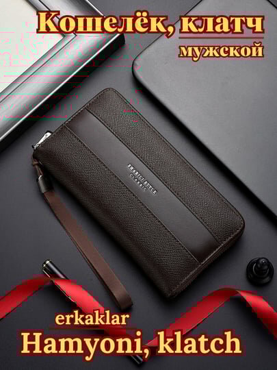 Кошелек-клатч мужской: стиль и функциональность Кошелек-клатч мужской выполнен из качественной эко-кожи , что обеспечивает его износостойкость и долговечность. Размер кошелька составляет 20см*10см*3см, что позволяет вместить все необходимые вещи. Внутри основного отделения расположены 4 кармана для хранения денег, один карман на молнии для мелочей и 8 отделений для пластиковых карт и визиток. Это позволяет удобно организовать пространство и всегда иметь под рукой все необходимые вещи. Кошелек оснащен ремешком для удобного ношения в руке, что делает его еще более практичным и функциональным. Качественная фурнитура и фабричное производство Кошелек-клатч мужской оснащен качественной фурнитурой. Кошелек произведен на фабрике, что подтверждает его качество. Выбирая этот кошелек-клатч, вы получаете стильный и функциональный аксессуар, который станет незаменимым помощником в повседневной жизни.