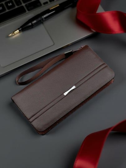 Кошелек, клатч мужской, размер 20см*10см*3 см Этот мужской кошелек-клатч выполнен из качественной эко-кожи , что обеспечивает его износостойкость и долговечность. Внутри основного отделения расположены три кармана для хранения денег, один карман на молнии для мелочей и 12 отделений для пластиковых карт и визиток. Кошелек оснащен удобным ремешком для ношения в руке, что позволяет комфортно переносить все необходимые предметы. Качественная фурнитура и фабричное производство гарантируют качество и надежность данного аксессуара. Выбирая этот кошелек-клатч, вы получаете стильный, практичный и функциональный аксессуар, который станет незаменимым помощником в повседневной жизни.