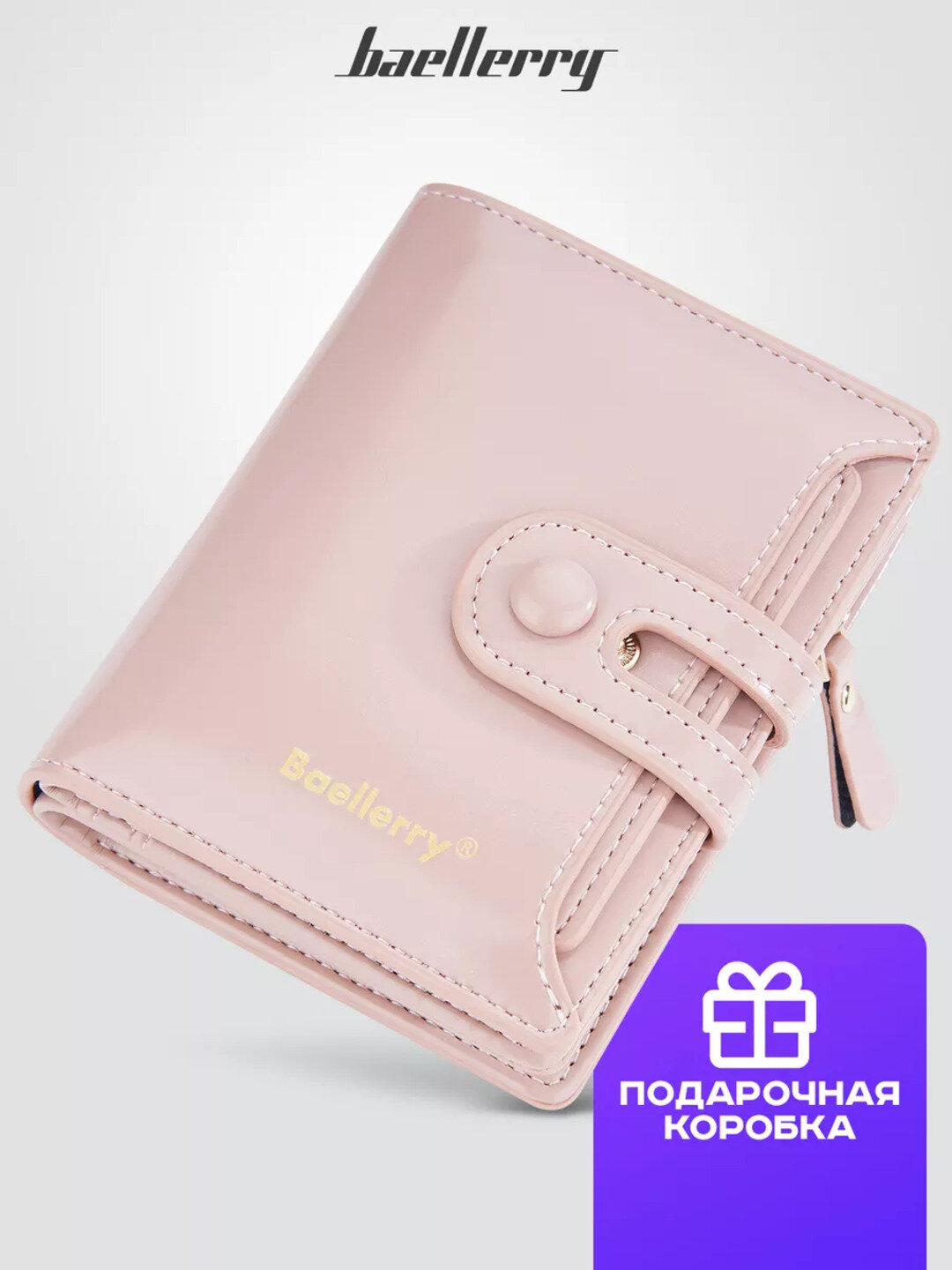 Кошелек женский Baellery Voge Этот женский кошелёк выполнен в лаконичном и элегантном стиле, идеально подходящем для тех, кто ценит минимализм и функциональность. Он изготовлен из гладкого материала, который сочетает в себе универсальность и изысканность, делая аксессуар подходящим как для повседневного использования, так и для более формальных случаев. На внешней стороне кошелька располагается застёжка на металлической кнопке, которая обеспечивает надёжное закрытие и удобный доступ к содержимому. Внутри кошелька видно множество отделений: узкие секции для хранения карт, визиток и документов, а также более широкие отделения, предназначенные для купюр. Компактные размеры кошелька позволяют легко разместить его в сумочке, даже небольшой, а благодаря продуманной организации он остаётся максимально функциональным. Особым декоративным элементом является изящная золотистая надпись Baellery на передней части, которая добавляет нотку утончённости и стиля. Этот кошелёк станет не только полезным аксессуаром, но и отличным дополнением к вашему образу.