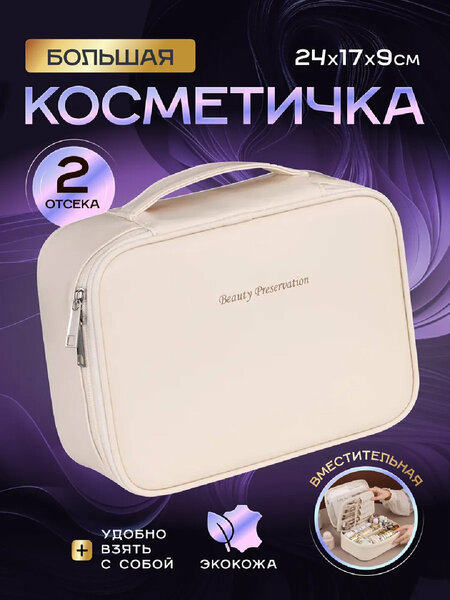 Косметичка-органайзер для косметики и аксессуаров — это идеальное решение для тех, кто ценит порядок, стиль и удобство. Благодаря компактному размеру и продуманной внутренней организации, она легко помещается в сумку или чемодан, при этом оставаясь достаточно вместительной, чтобы разместить всю необходимую косметику и аксессуары. Преимущества: Минималистичный дизайн — современный, аккуратный и универсальный, подходит для женщин любого возраста. Продуманная структура — несколько отделений и кармашков позволяют удобно рассортировать косметику, кисточки, украшения и мелкие аксессуары. Удобная ручка для переноски делает косметичку практичной в дороге и на каждый день. Надёжная молния гарантирует безопасность ваших вещей и предотвращает случайное открытие. Лёгкий и прочный материал — устойчив к износу и легко очищается. Где можно использовать: для хранения косметики дома, во время путешествий и командировок, как аккуратный органайзер для аксессуаров, украшений или средств ухода. Эта косметичка-органайзер станет вашим незаменимым помощником в любой ситуации. Всё, что нужно для красоты и комфорта, теперь всегда под рукой!