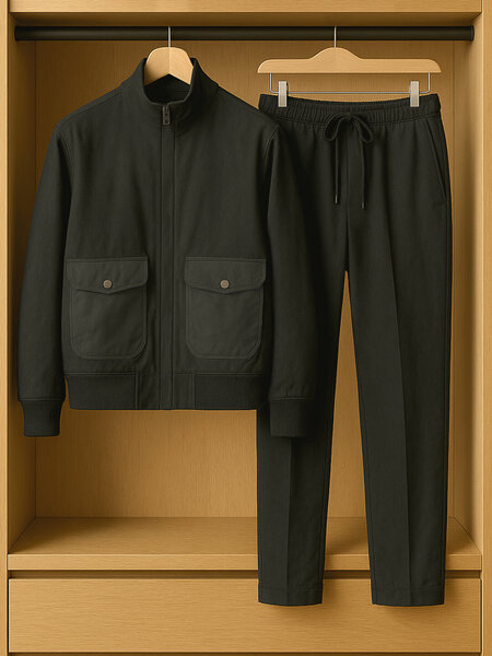 Этот спортивный костюм состоит из двух частей: куртки и брюк. Куртка имеет прямой крой, застегивается на молнию и оснащена двумя вместительными накладными карманами с клапанами. Брюки выполнены с эластичным поясом и шнурком для регулировки. Костюм подходит для повседневной носки, прогулок и легких физических нагрузок. Преимущества костюма: Комфорт: Эластичный пояс и шнурок на брюках обеспечивают удобную посадку и свободу движений. Практичность: Накладные карманы на куртке позволяют удобно хранить мелкие предметы. Универсальность: Костюм подходит как для активного отдыха, так и для повседневной носки. Простота ухода: Материал легко стирается и быстро сохнет. Стильный дизайн: Универсальный черный цвет и лаконичный крой делают костюм подходящим для любого случая. Инструкция по уходу: Стирать при температуре не выше 30°C в деликатном режиме. Не использовать отбеливатели. Сушить в расправленном виде, избегая прямых солнечных лучей. Гладить при низкой температуре, если это необходимо. Хранить в сухом месте, вдали от влаги.